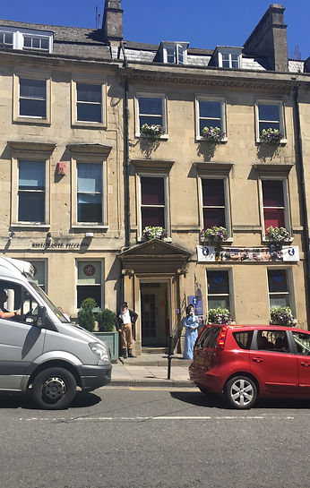 As you enter Bath, quote these lines from Northanger Abbey, "Her eyes were here, there, everywhere, as they approached its (Bath's) fine and striking environs, and afterwards drove through those streets which conducted them to the hotel. She was come to be happy, and she felt happy already."